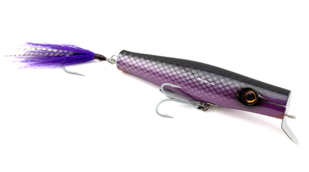 Made by Larry Welcome, the maker of NorthBar Tackle Lures. This is the Sporting Wood version of the classic Danny plug that was originally invented by Danny Pichney and Don Musso. Comes in at 7" and weighs in at around 3oz. This lure is a surface swimmer that stays up top. This is a great plug to throw in boulder fields, and in many other situations. It works well both during the day, and at night. This style of plug is also popular for trolling from the boat.