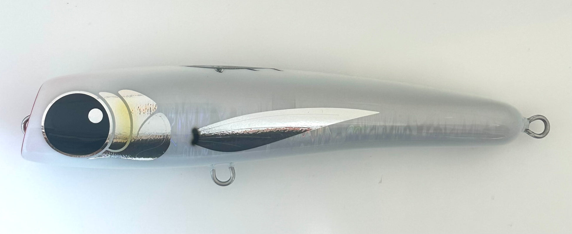 This diving popper is designed to combine the action of a popper and a stickbait. The diving popper moves beneath the surface in a darting motion leaving a bubble trail. Its slender profile will be a perfect match for many of our local baits.